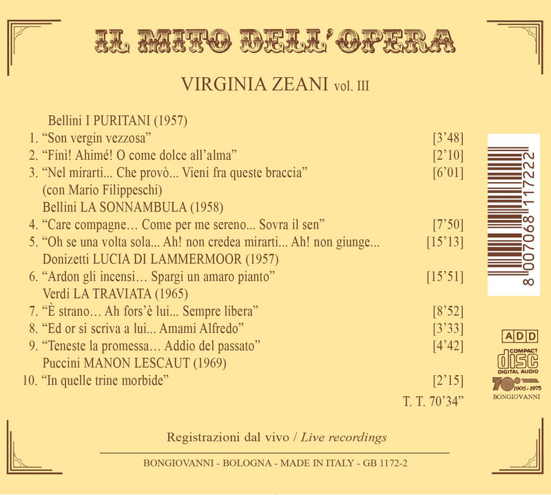 BongiovanniIl mito dell'oprera - Virginia Zeani, Vol. III