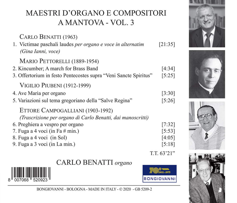 BongiovanniMaestri d'Organo e Compositori a Mantova, Vol. 3 / Benatti, Ianni