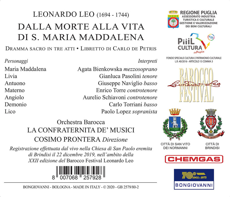 BongiovanniLeo: Dalla morte alla vita di S. Maria Maddalena / Prontera, Orchestra Barocca la Confraternita de Musici