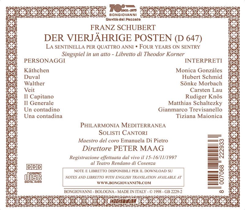 BongiovanniSchubert: Der Vierjahrige Posten / Maag, Solisti Cantori, Philharmonia Mediterranea
