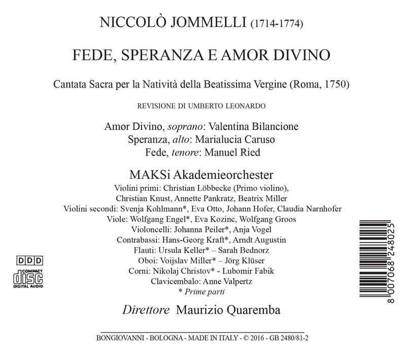 On SaleBongiovanniJommelli: Fede, speranza e amor divino / Quaremba, MAKSi Akademieorchester