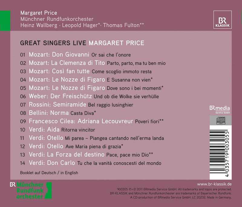 A feast for the ears from start to finish. These recordings come from four appearances by the late Dame Margaret Price, between...