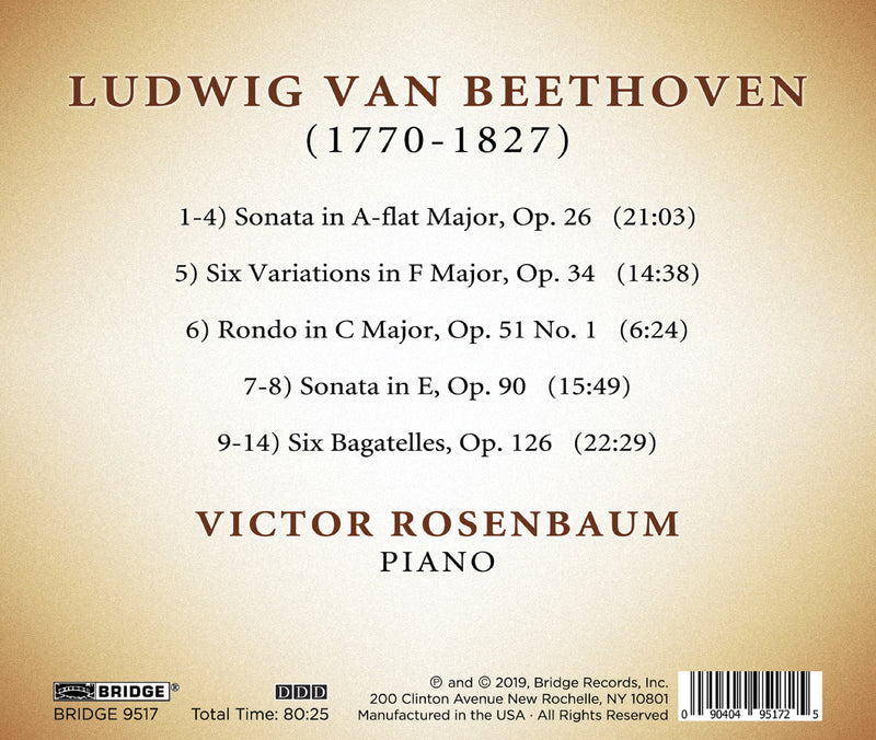 American pianist Victor Rosenbaum returns for his third album for Bridge Records, a deeply felt and beautifully rendered all-Beethoven recital recorded in...