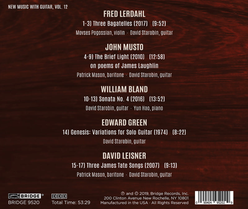 American guitarist David Starobin's newest recording includes five works dedicated to the Grammy-nominated virtuoso. Included on the recording are two song cycles...