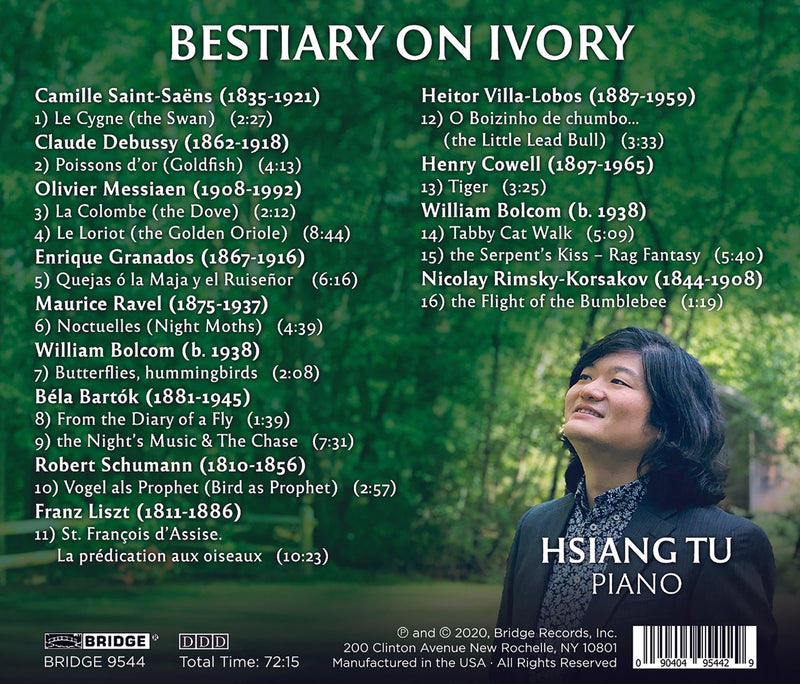 Pianist Hsiang Tu presents a delightful collection of works from the animal kingdom. Bestiary on Ivory offers a wide-ranging collection from Bolcom...