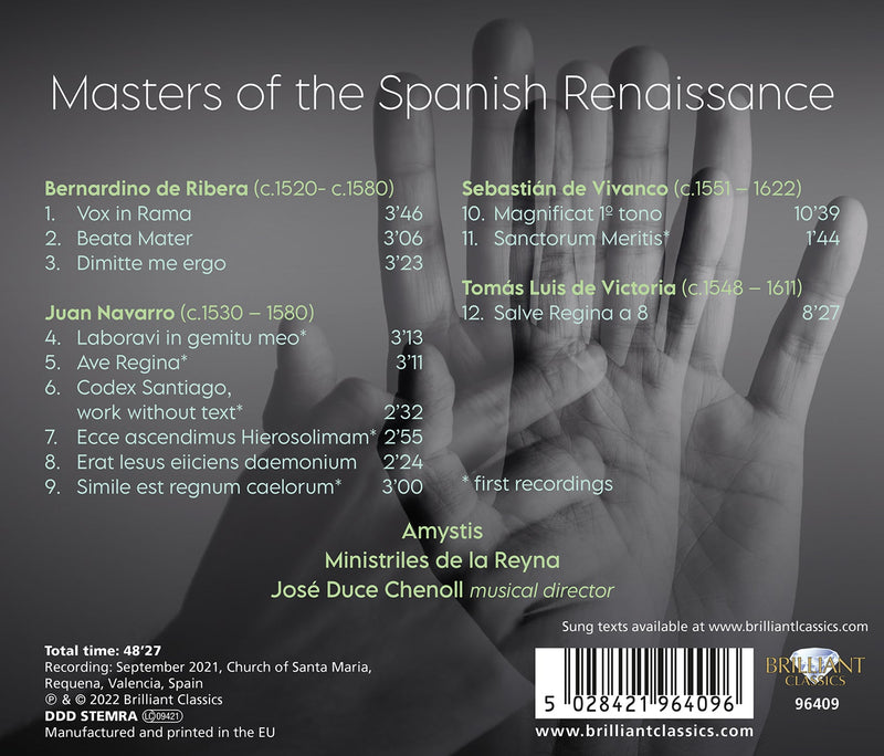 Brilliant ClassicsDe Ribera, Navarro: Masters of the Spanish Renaissance / Chenoll, Amystis, Ministriles de Reyna