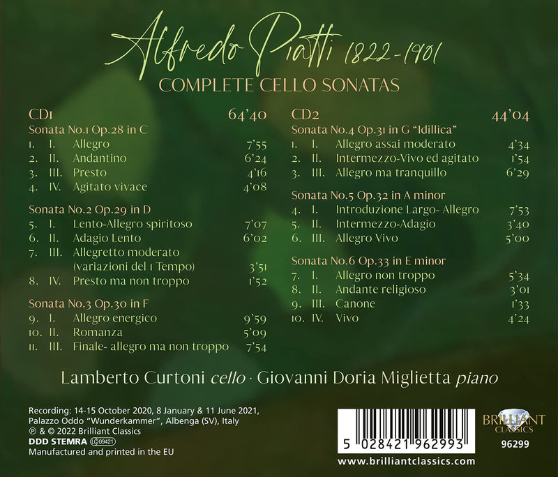 A capacious library of Baroque-era works bears the name of the Italian cellist Alfredo Piatti (1822-1901) as an assiduous and pioneering editor,...