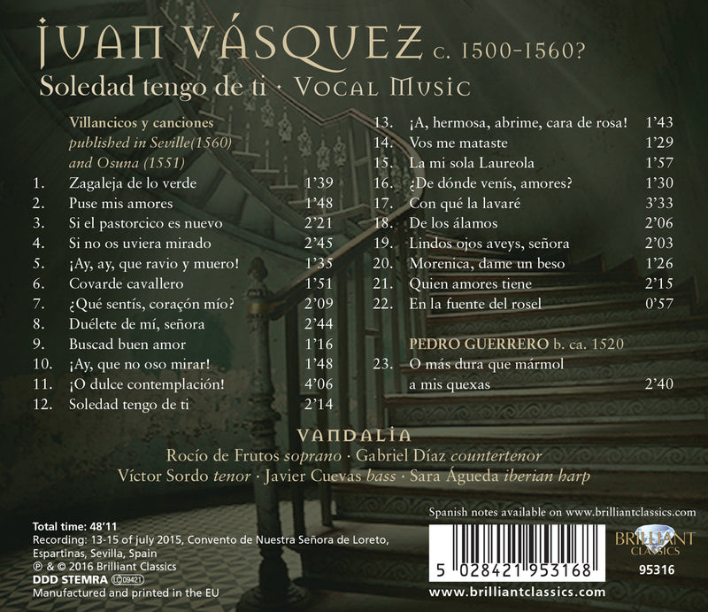 Little is known about the life of Spanish composer Juan Vasquez, fl. 16th century. A skilled and successful composer, he was in...