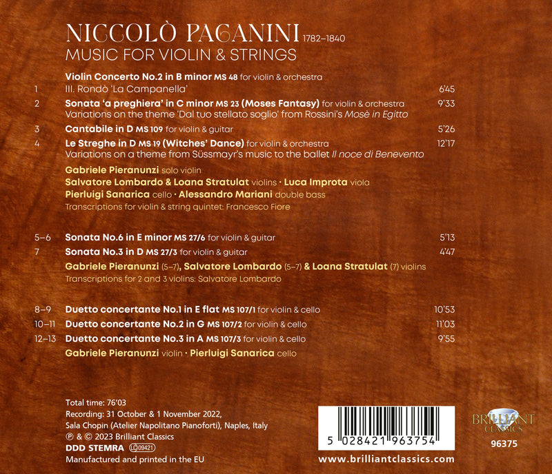On SaleBrilliant ClassicsPaganini: Music for Violin & Strings / Gabriele Pieranunzi