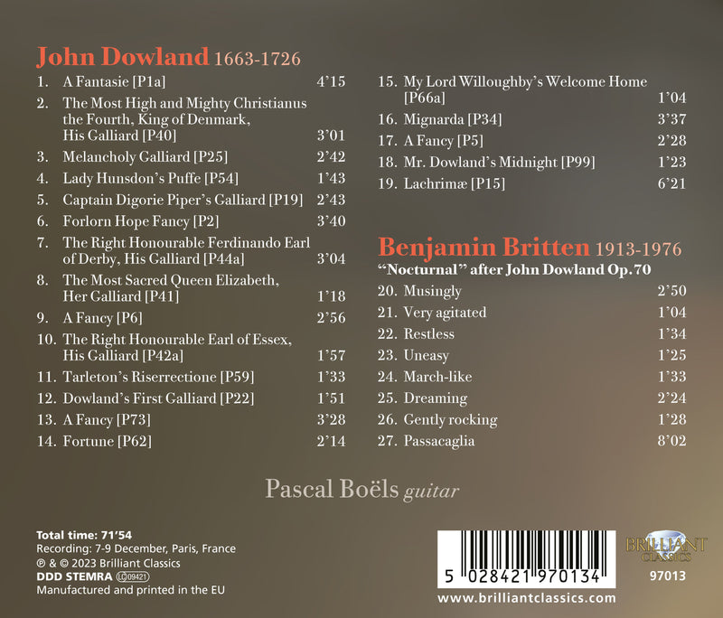 On SaleBrilliant ClassicsDowland: Melancholy; Britten: Nocturnal - Guitar Music / Boëls