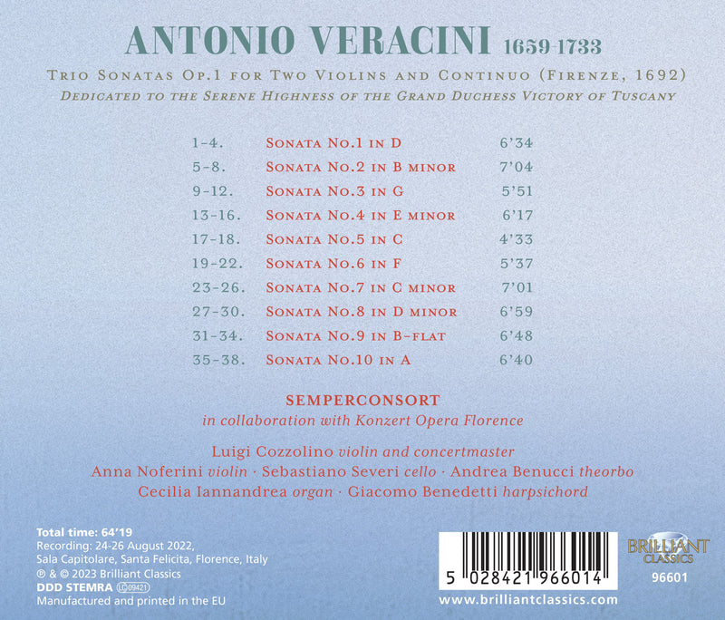 On SaleBrilliant ClassicsVeracini: Trio Sonatas, Op. 1 / Cozzolino, Semperconsort
