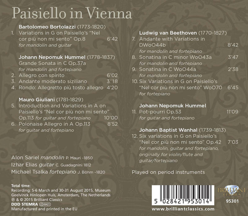 Brilliant ClassicsPaisiello In Vienna: Variations On "nel Cor Piu Non Mi Sento" By Beethoven, Giuliani, Wanhal, Bortolazzi