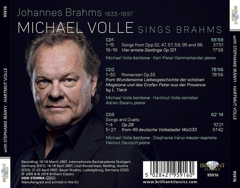 I'm very happy,' remarks Michael Volle in a booklet interview accompanying this reissue, which gathers together the three albums of Brahms Lieder...