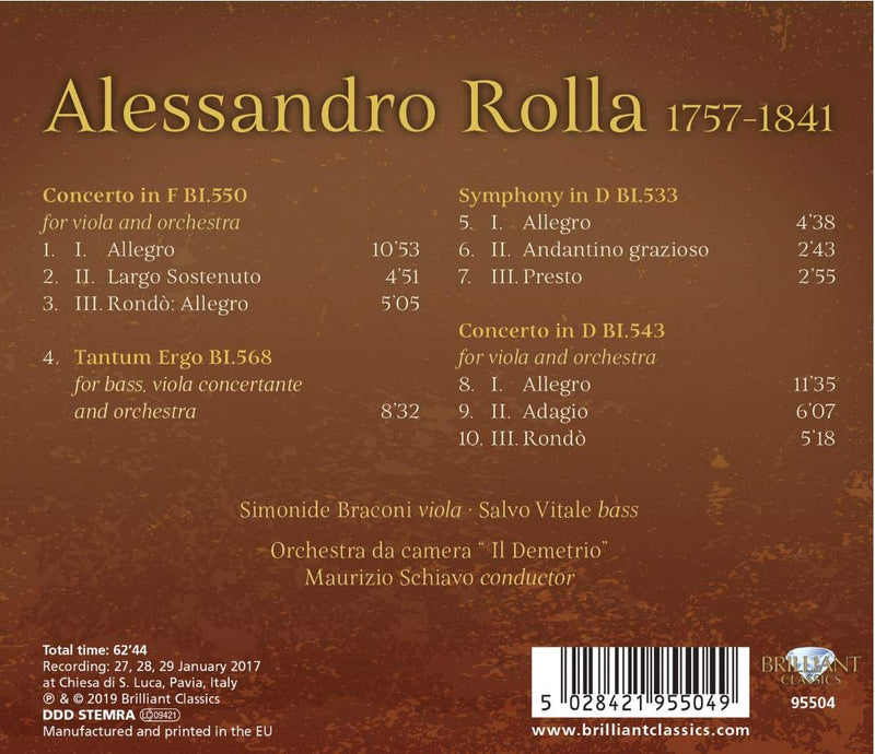 Brilliant ClassicsRolla: Viola Concertos, Symphony in D & Tantum ergo / Schiavo, Vitale, Braconi, Il Demetrio