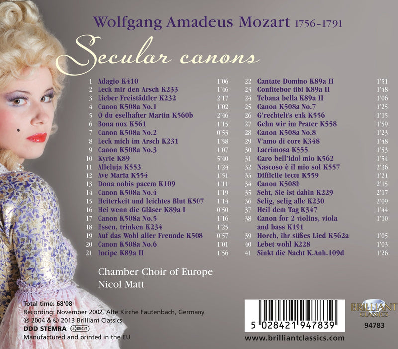 Mozart: Gehn wir i'm Prater, Secular Canons, Composer Wolfgang Amadeus Mozart, Artist Chamber Choir Of Europe, Nicol Matt conductor, Format 1 CD,...