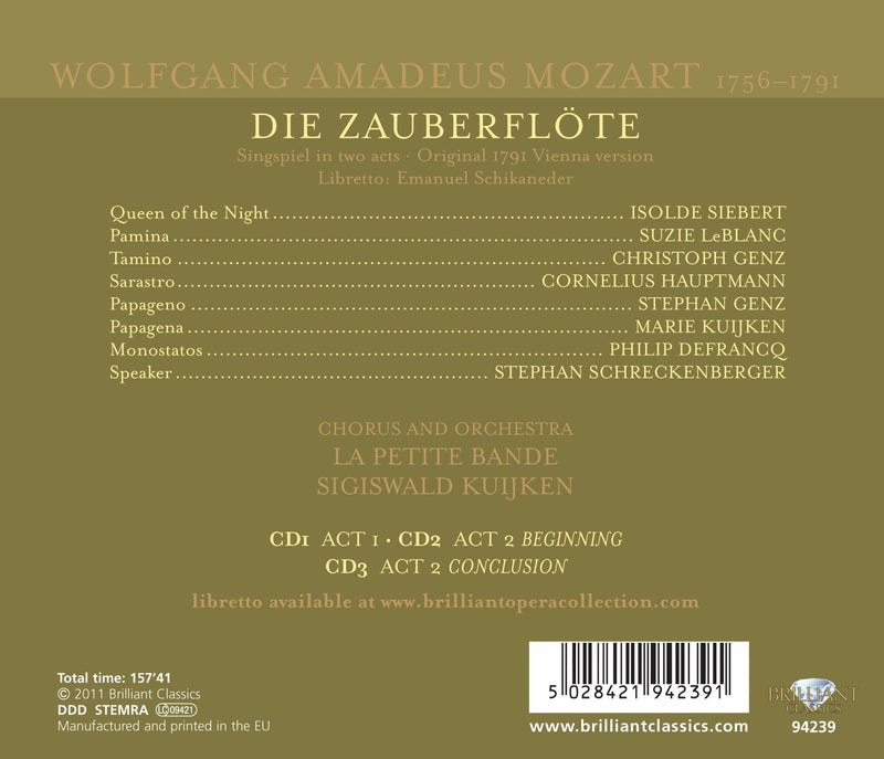 Brilliant ClassicsMozart: Die Zauberflöte / S. Kuijken, La Petite Bande
