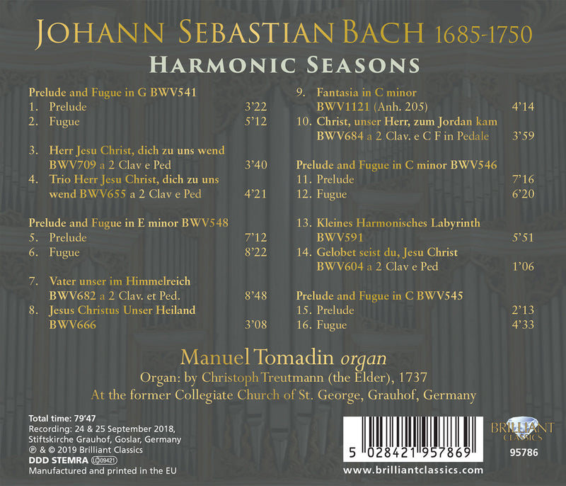For this uniquely compiled new recording of Bach's organ works, the Italian organist Manuel Tomadin devised a concept of organizing music by...