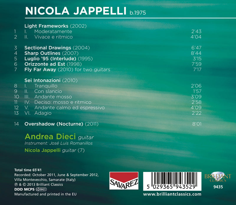 Several of the works on this new recording were composed expressly for Dieci, including Overshadow (Notturno), Light Frameworks, Sectional Drawings and Sharp...