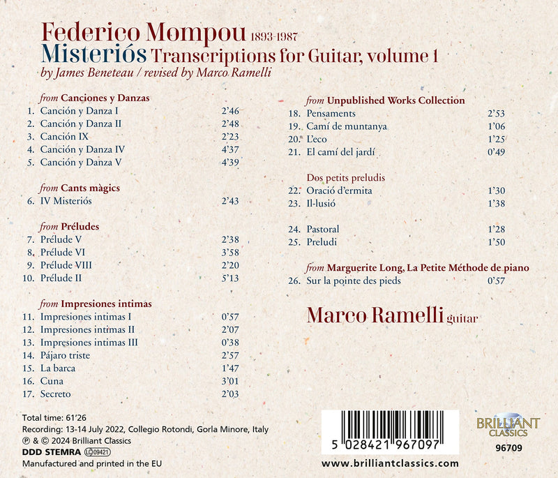 Brilliant ClassicsMompou: Misterios - Transcriptions for Guitar, Vol. 1 / Ramelli