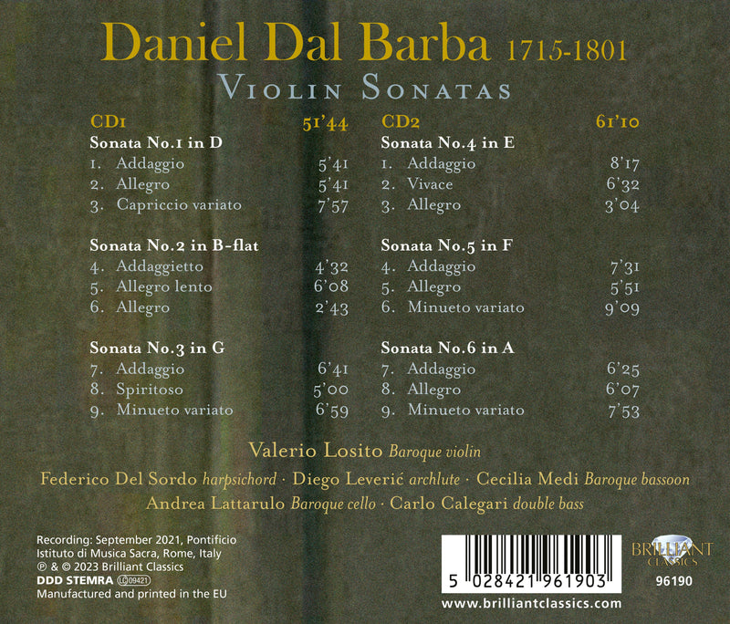 Brilliant ClassicsDal Barba: Violin Sonatas / Losito, Leveric, Medi, Lattarulo, Galegari, Del Sordo
