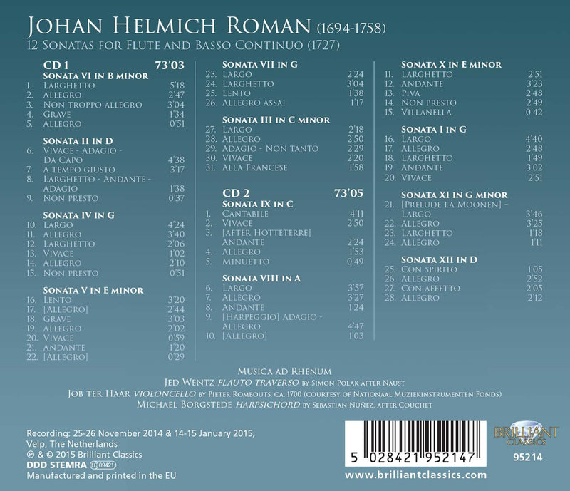 Brilliant ClassicsRoman: 12 Sonatas for Flute and Basso Continuo