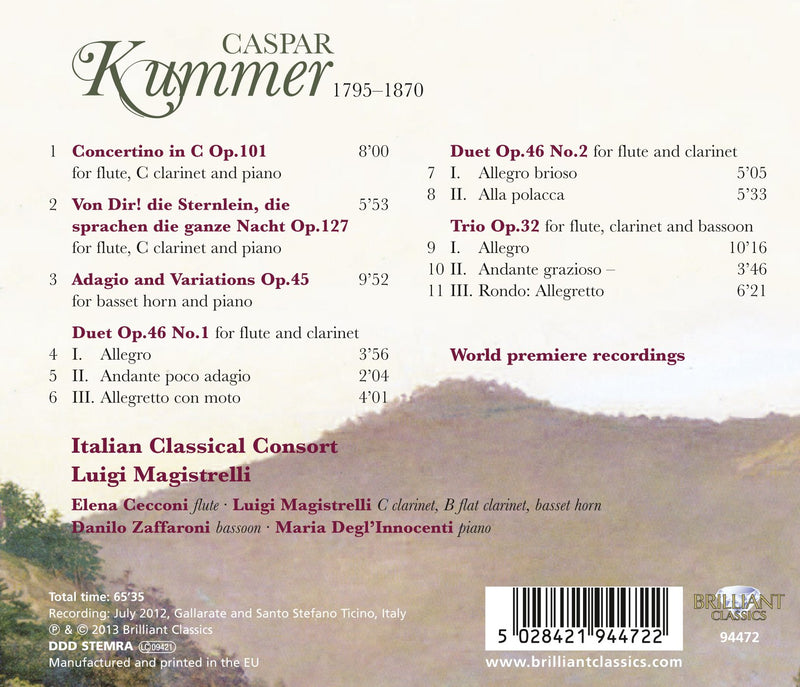 Brilliant ClassicsKummer: Chamber Music For Winds / Magistrelli, Italian Classical Consort