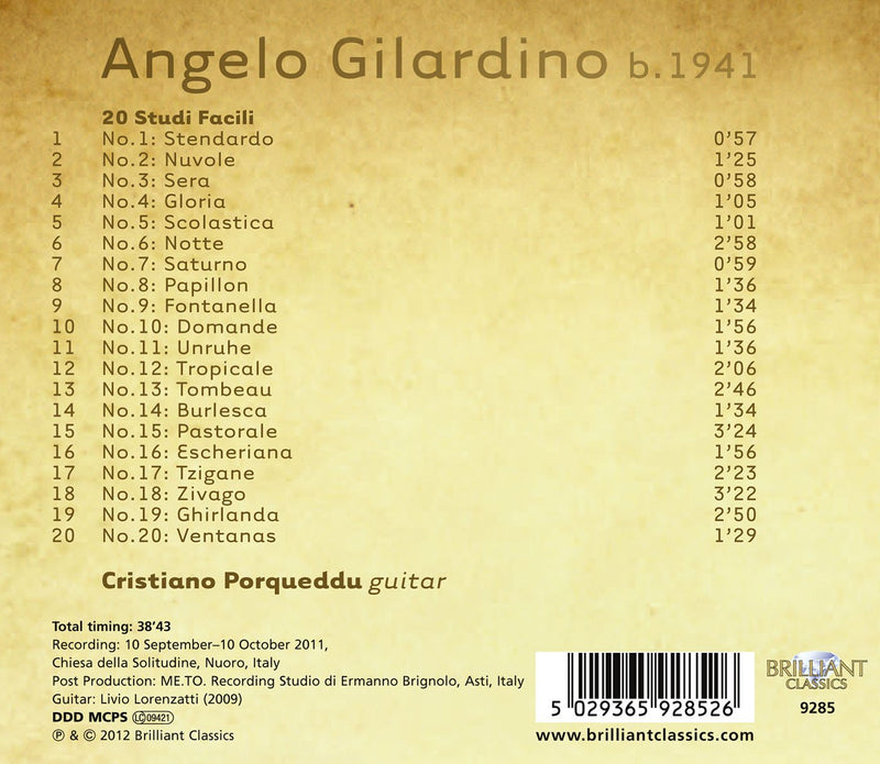 Brilliant ClassicsGilardino: 20 Studi Facili / Cristiano Porqueddu