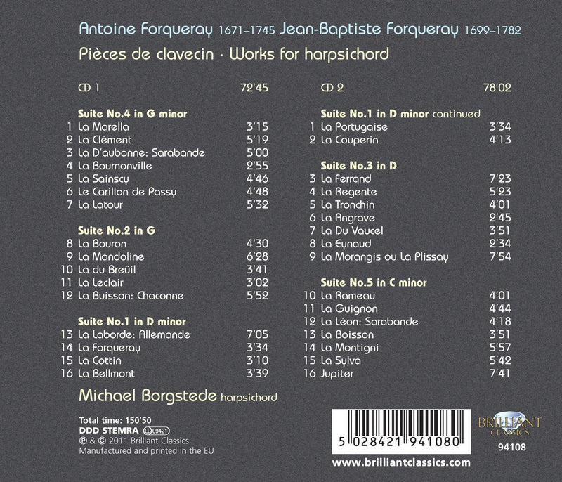 Brilliant ClassicsForqueray: Works For Harpsichord / Michael Borgstede
