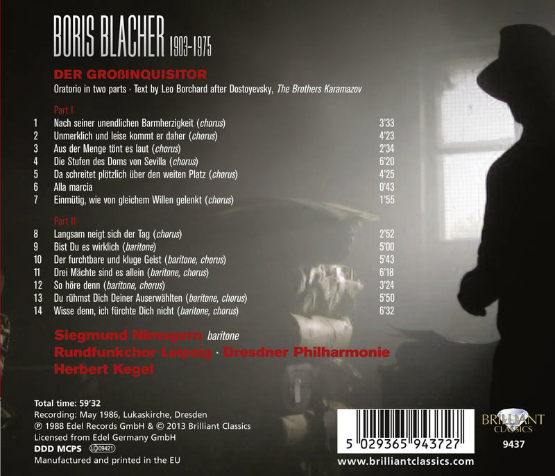 BLACHER Der Großinquisitor • Herbert Kegel, cond; Siegmund Nimsgern (bar); Leipzig R Ch; Dresden PO • BRILLIANT 9437 (59:32 & German only)...
