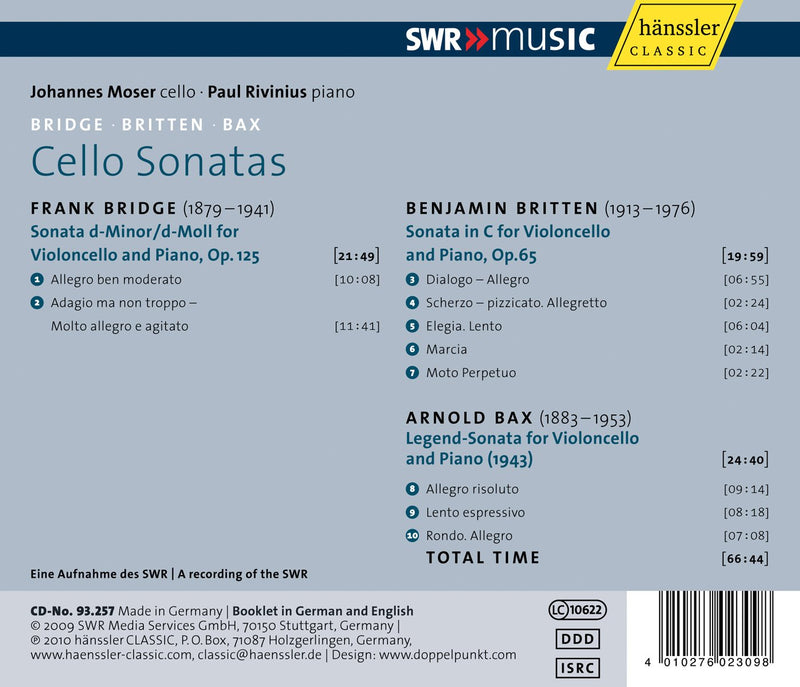 Beneath the shimmering surface of Delius�s little-known violin sonatas are the latent exuberance and nostalgic rapture which have made his orchestral music so popular. Across the decades separating the B major Violin Sonata of 1892 from the Third Violin Sonata of 1930, Delius developed a unique musical language which leavened the post-Romantic heritage of Wagner with French Impressionism and European and Afro-American folk idioms; an intoxicating mix that moved Sir Thomas Beecham to call him �the last great apostle in our time of beauty and romance in music�.