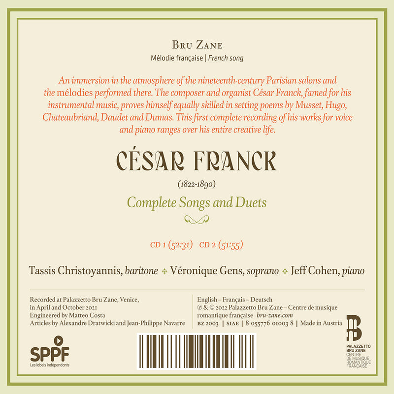 On SaleBru ZaneFranck: Complete Songs & Duets / Graziani, Gens, Christoyannis, CohenAbundant though it is, César Franck’s vocal music (operas, sacred music, oratorios, mélodies) does not occupy a prominent place in the current...