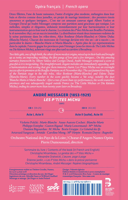 Bru ZaneMessager: Les P'tites Michu / Dumoussaud, Pays de la Loire National OrchestraFormed to promote French Romantic repertoire, Palazzetto Bru Zane is doing sterling work with its Book+CD series. I’m especially enjoying exploring the...