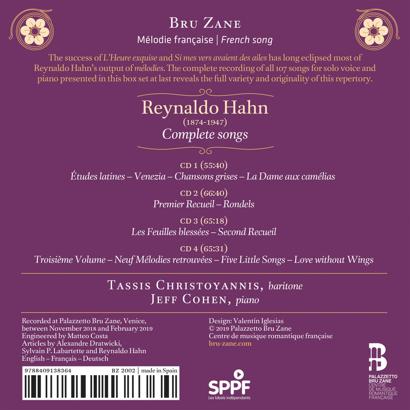 Bru ZaneHahn: Complete Songs / Christoyannis, CohenIn the firmament of the French mélodie repertory, stars named Chausson, Duparc, Debussy, Fauré, Poulenc shine resplendent. Somewhere below this galaxy, an...