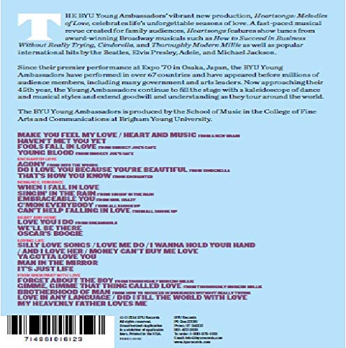 BYU RecordsHeartsongs: Melodies of LoveThe BYU Young Ambassadors’ new production, "Heartsongs: Melodies of Love," is a fast-paced musical revue created for family audiences. + "Heartsongs" features...