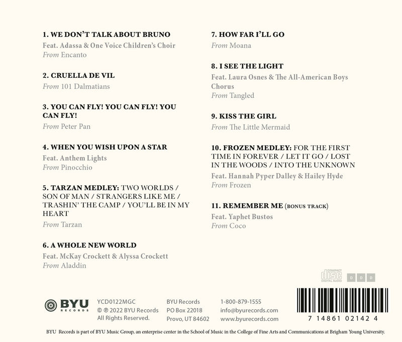 BYU RecordsMagic - Disney Through Time / BYU Vocal PointFrom new to classic Disney songs, this new album features collaborations with Adassa (the original voice of Delores in "Encanto"), Laura Osnes,...