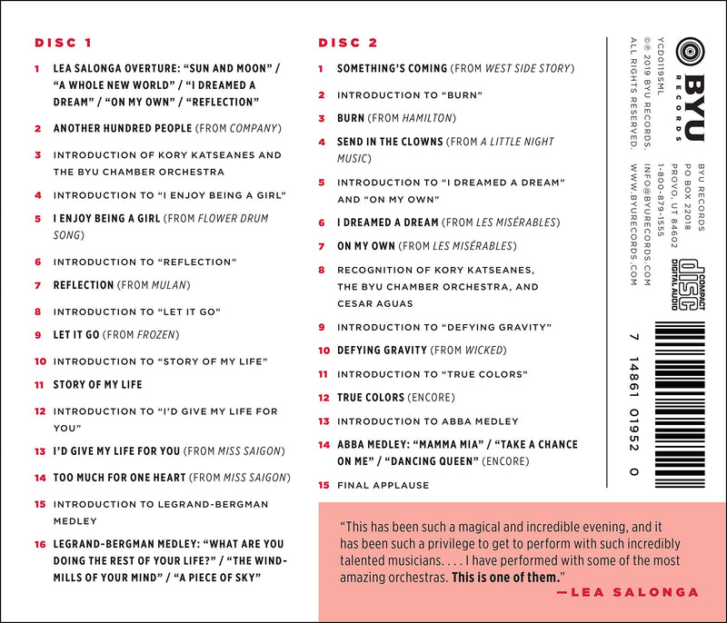 BYU RecordsThe Story of My Life: Live from Manila / Salonga, Brigham Young University Chamber Orchestra'The Story of My Life' features Lea Salonga and the BYU Chamber Orchestra performing some of Lea's favorite Broadway, Disney, and pop...