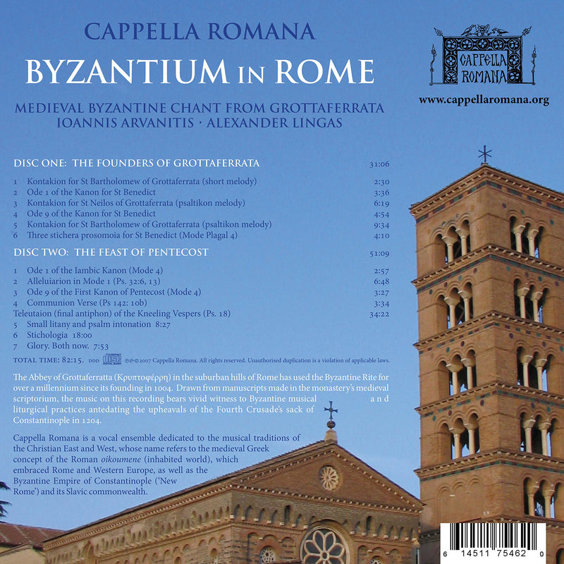 Cappella RecordsByzantium In Rome / Cappella RomanaThis release by Cappella Romana is a breathtaking collection of Medieval Byzantine Chant sung from manuscripts made at the Abbey of Grottaferrata...