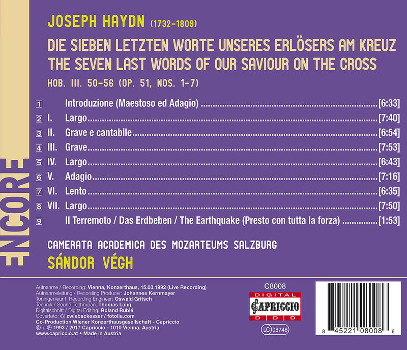 CapriccioHaydn: The Seven Last Words of Our Saviour on the Cross / Vegh