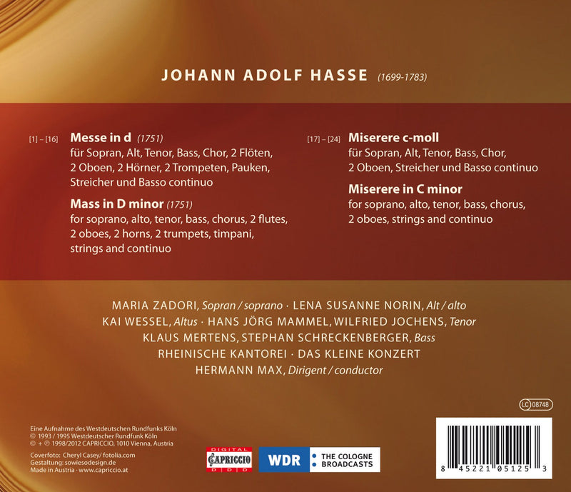 CapriccioHasse: Mass In D; Miserere In C / Max, Rheinische Kantorei, Das Kleine Konzert