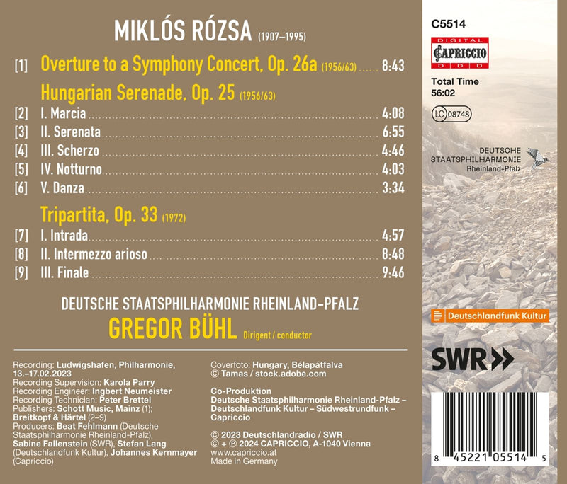 CapriccioRózsa: Orchestral Works / Bühl, Deutsche Staatsphilharmonie Rheinland-Pfalz
