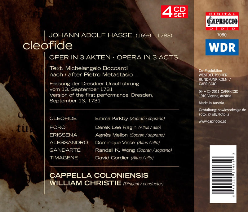 A delightful opera by a forgotten composer; if you like Handel, check out Cleofide. Recorded back in 1986, and reissued several times...