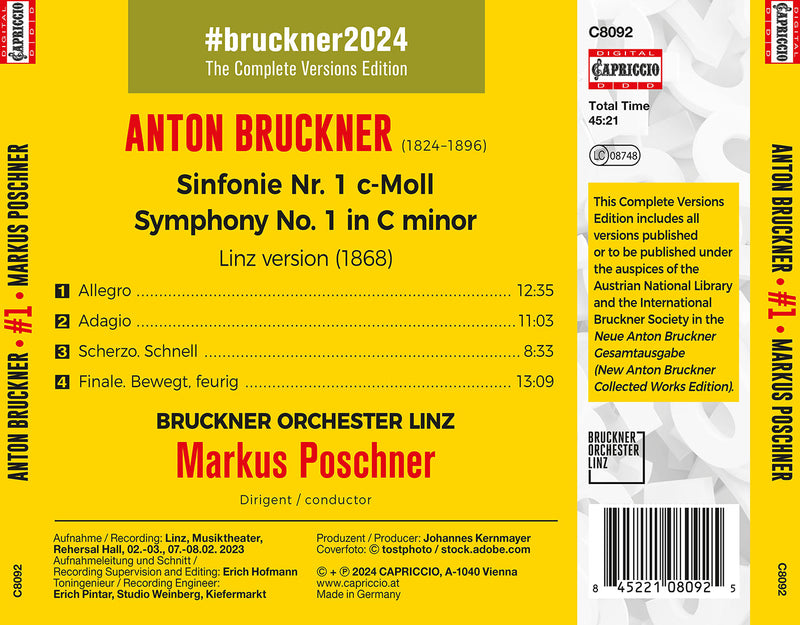 CapriccioBruckner: Symphony No. 1 / Poschner, Linz Bruckner Orchestra