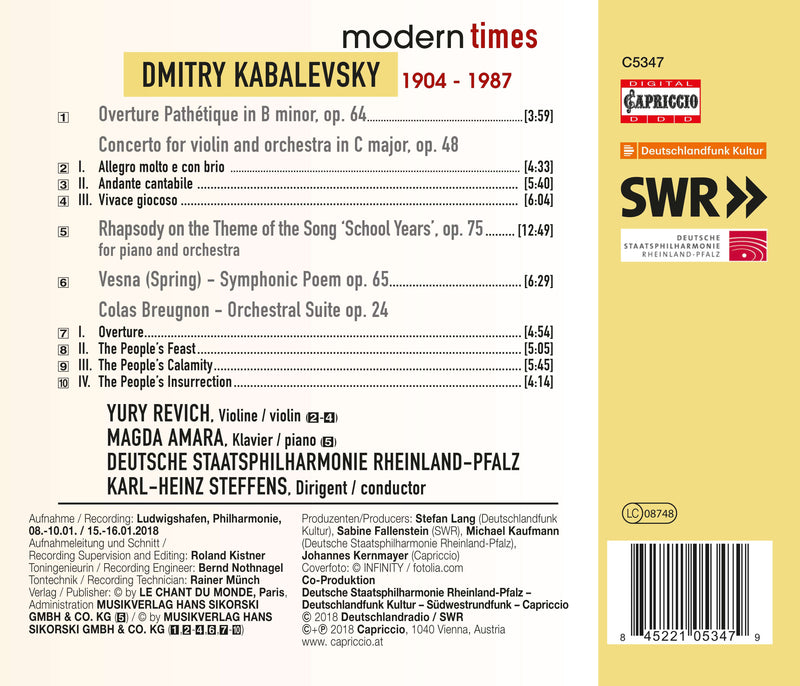 CapriccioKabalevsky: Pathetique Overture, Violin Concerto, Vesna & Colas Breugnon / Steffens, Deutsche State Philharmonic