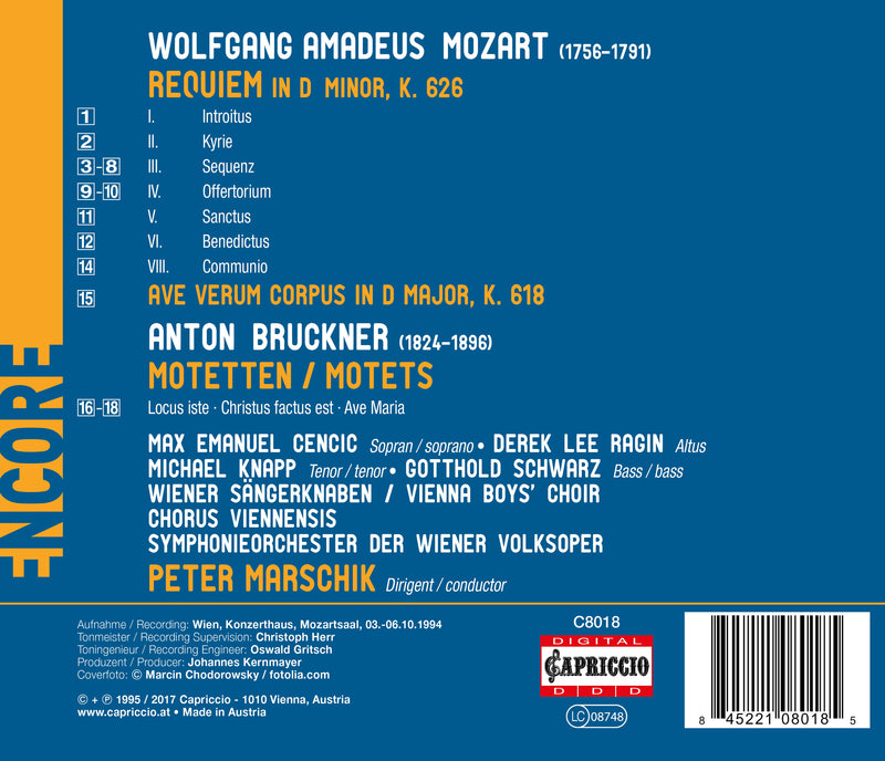 CapriccioMozart: Requiem & Ave Verum - Bruckner: Motets / Marschik, Vienna Folk Opera Symphony
