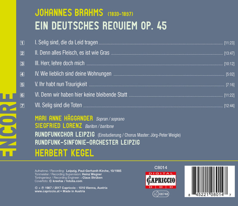 CapriccioBrahms: Ein deutsches Requiem / Kegel, Leipzig Radio Symphony