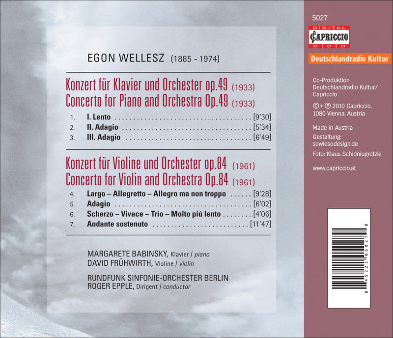 CapriccioEgon Wellesz: Piano Concerto; Violin Concerto