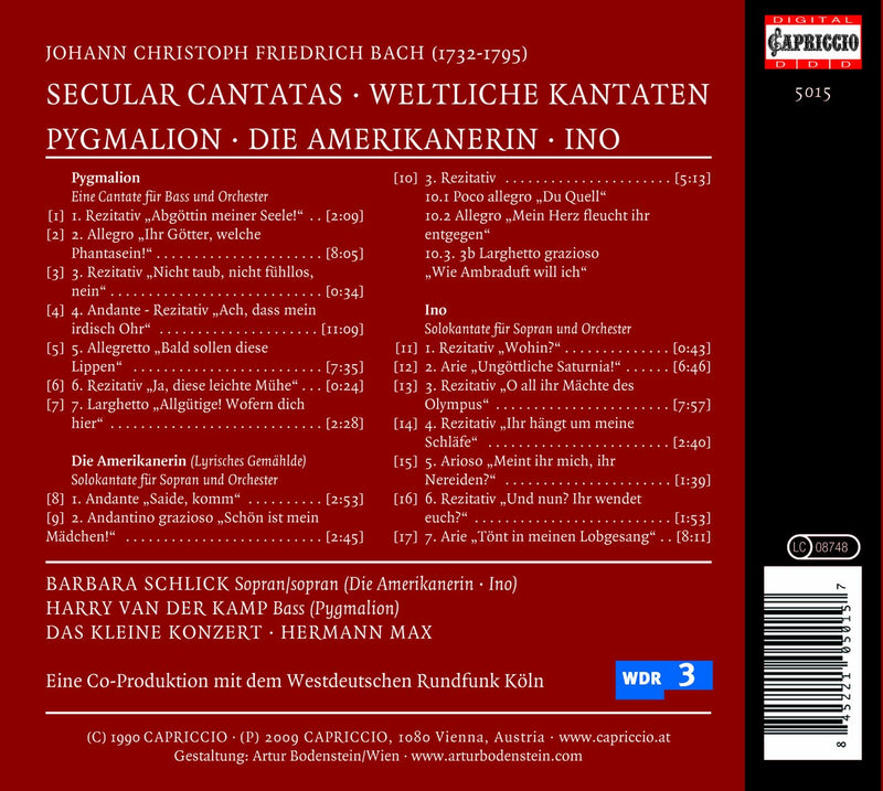 J. C. F. BACH Pygmalion. 1 Die Amerikanerin. 2 Ino 2 • Hermann Max, cond; Barbara Schlick (sop); 2 Harry van der...