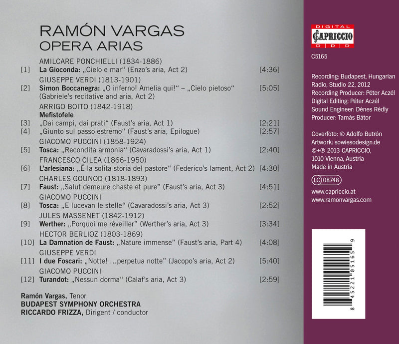 OPERA ARIAS • Ramón Vargas (ten); Riccardo Frizza, cond; Budapest SO • CAPRICCIO 5165 (48:01) PONCHIELLI La Gioconda: Cielo e mar. VERDI...