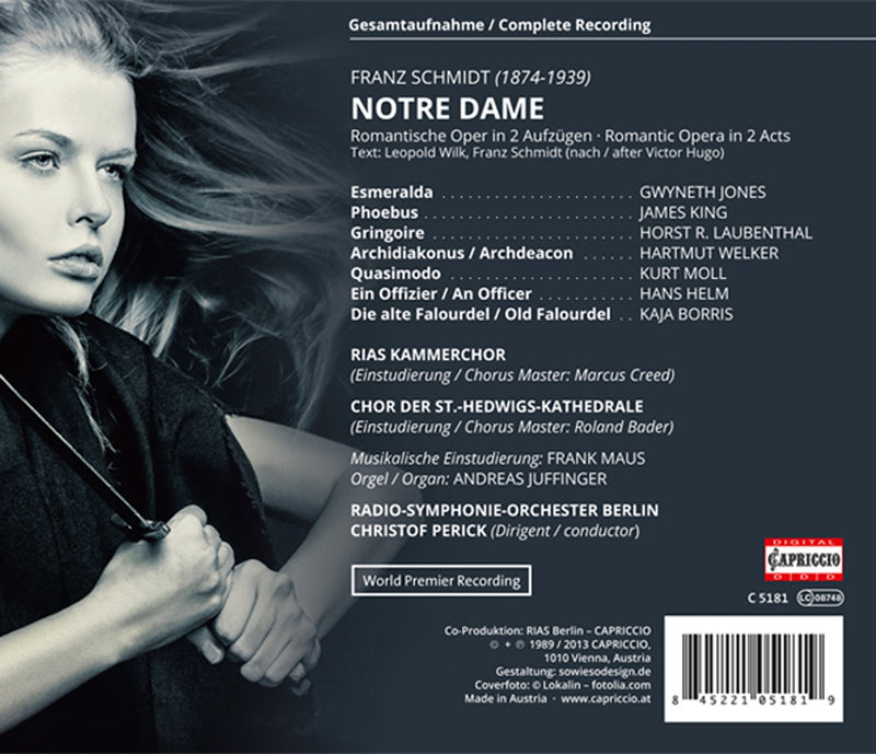 This world premiere recording of Schmidt's Notre Dame is dominated not by Paris or Quasimodo, but by Esmeralda, played by Gwyneth Jones....