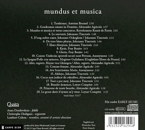 Carpe Diemmundus et musicaThis is a collection of polyphonic music from late medieval sources around the turn of the 15th century.